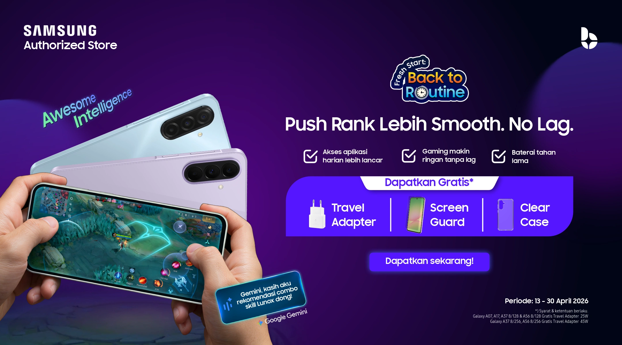 Wearables & Aksesoris Ekosistem: Tampil makin stylish dan terhubung dengan Galaxy Watch, Galaxy Buds, serta pilihan casing original.
