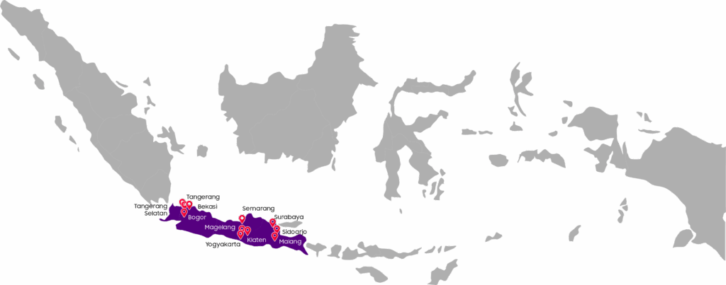 Kami didukung oleh 19 pusat distribusi yang strategis dan lebih dari 5.000+ jaringan dealer aktif. Jangkauan distribusi kami meliputi 12 Provinsi wilayah Aceh, Sumatera Utara, sebagian Jawa Tengah, Yogyakarta, sebagian Jawa Timur, Bali, Papua Barat, Papua, Nusa Tenggara Timur, Nusa Tenggara Barat, Maluku Utara, dan Maluku untuk memastikan layanan pengiriman dan distribusi yang luas, cepat, dan handal hingga ke pelosok negeri.