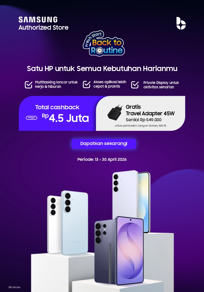 Program Tukar Tambah (Trade-In): Ingin upgrade ke S26? Bawa HP lamamu, kami taksir dengan harga terbaik untuk meringankan biayamu.