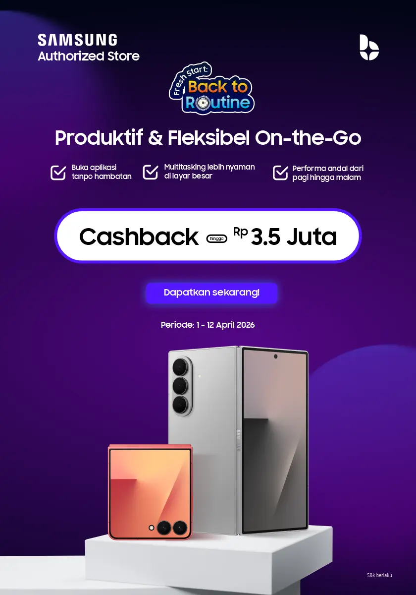 Experience Store: Anda bisa mencoba langsung sensasi melipat dan membuka Z Flip 7 atau Z Fold 7 di jaringan toko kami di Surabaya, Semarang, Jogja, hingga Tangerang sebelum memutuskan membeli.