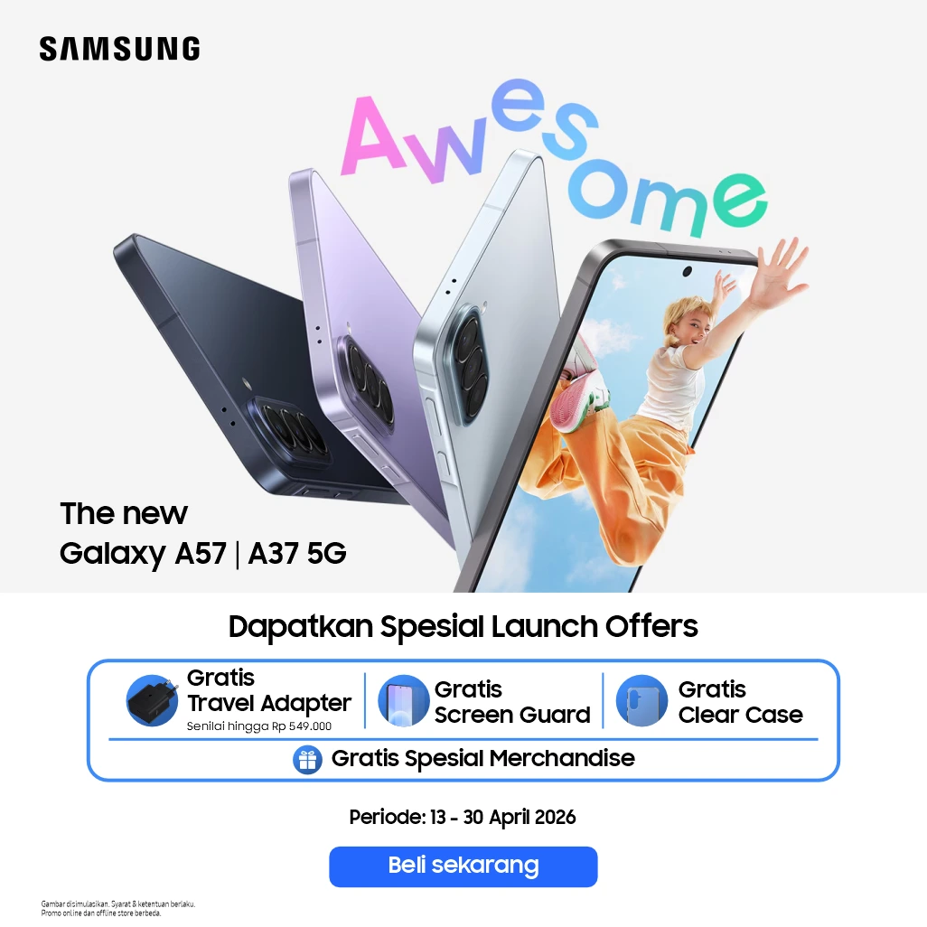 Jaminan garansi resmi Samsung selama 12 bulan, dengan penggantian suku cadang asli dan perbaikan di pusat Service Center Samsung.