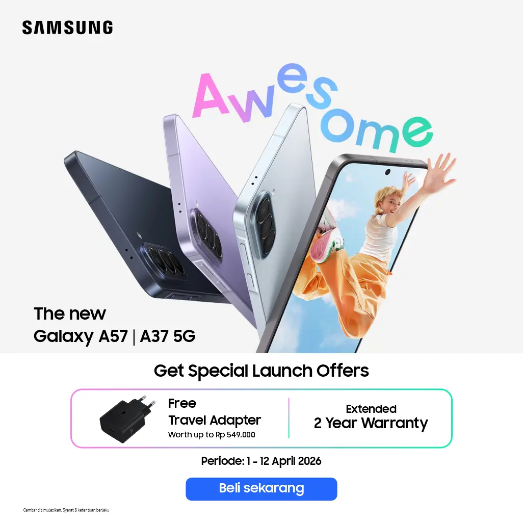 Jaminan garansi resmi Samsung selama 12 bulan, dengan penggantian suku cadang asli dan perbaikan di pusat Service Center Samsung.